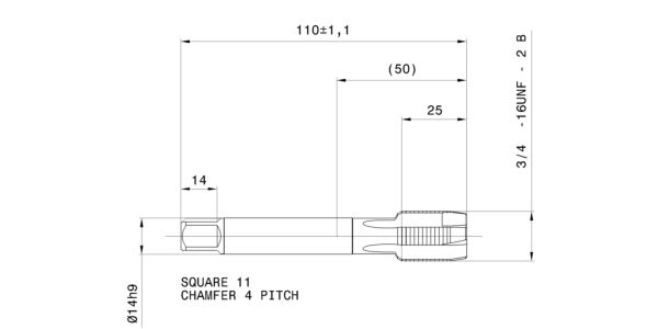Machine taps for UNF-threads 3/4 – 16 / 2B / 3xD / ~DIN 374 / DIN 2184-1 / HSS-E / bright / Type: N / Form: B / through hole / Cutting direction: right-hand /