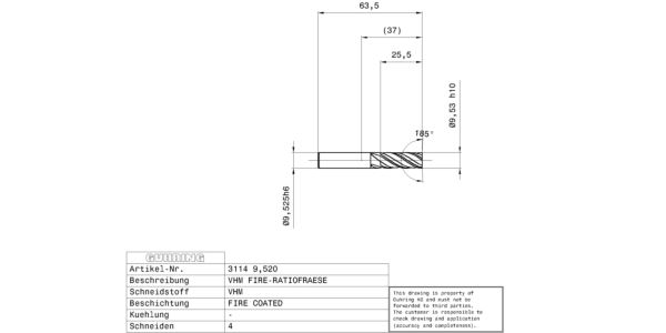 Ratio end mills standard RF 100 U / Ø 9.525 mm / h10 / Company std. / Solid carbide / FIRE / Type: N / Cutting direction: right-hand