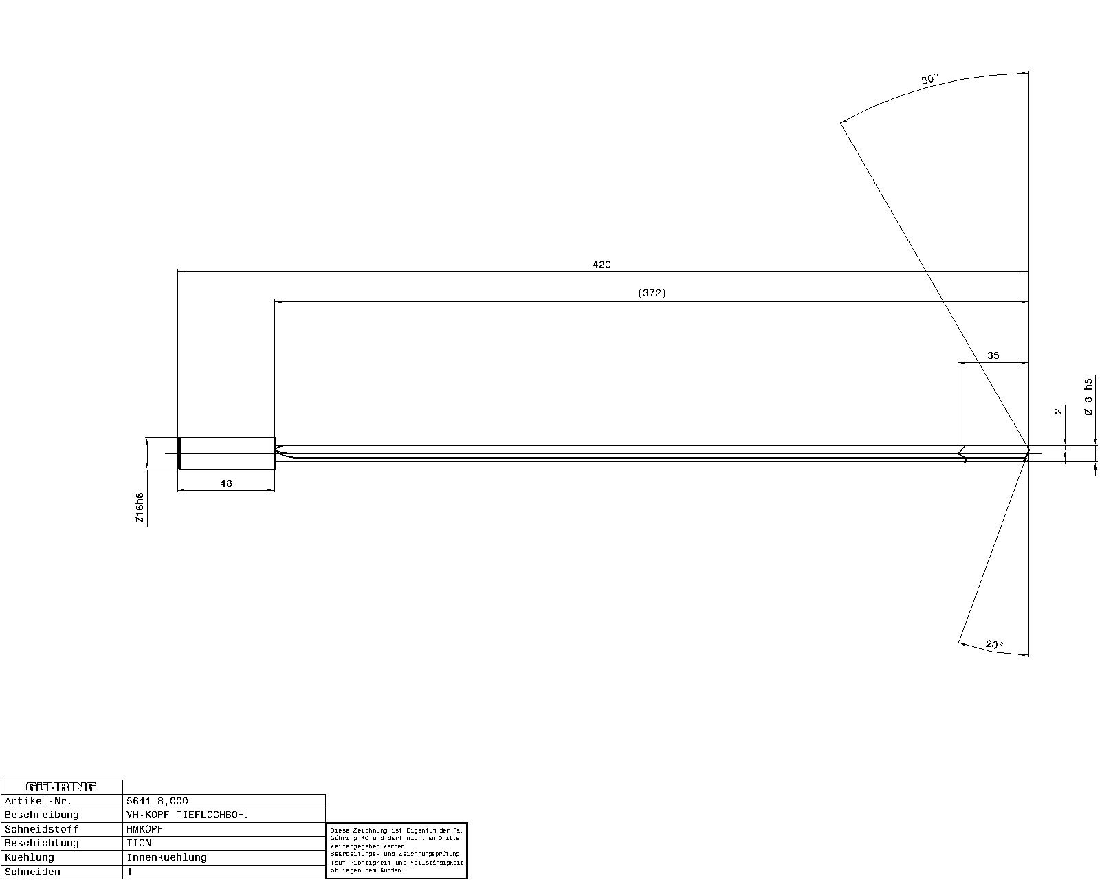 Guhring 40 x D Carbide Gun drills Carbide TiCN Coated