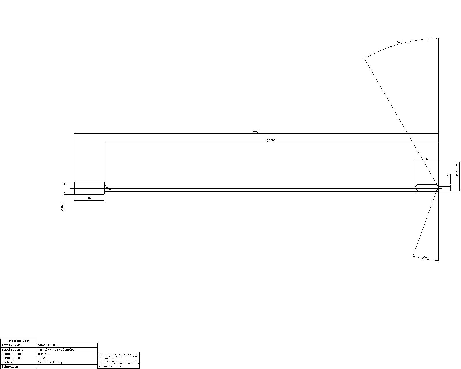 Single-fluted gun drills EB 80 / Ø 12.000 mm / 40xD / Company std. / Carbide / TiCN / Type: EB 80 / Cutting direction: right-hand /