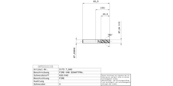 Slot drills GH 100 U (3-fluted) / Ø 7.938 mm / h10 / Company std. / Solid carbide / FIRE / Type: NH / Cutting direction: right-hand