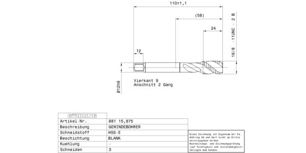 Machine taps for UNC-threads 5/8 – 11 / 2B / 3xD / ~DIN 376 / DIN 2184-1 / HSS-E / bright / Type: N R40 / Form: C / blind hole / Cutting direction: right-hand /