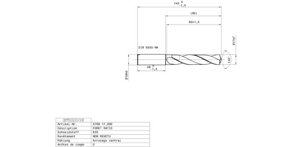 Execution: Web thinning ≥ Ø 3.000 mm • relieved cone • main cutting edge is slightly concave • optimised cutting edge geometry • sharp cutting characteristics • polished functional surfaces for the prevention of built-up edges
