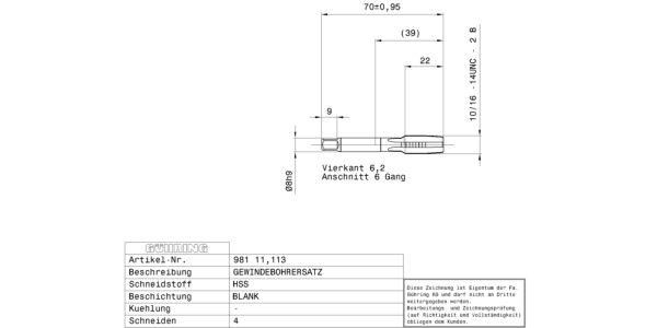 Set Hand taps for UNC-threads 7/16 – 14 / 2B / ~DIN 352 / DIN 2184-2 / HSS / bright / Type: N / through-, blind hole / Cutting direction: right-hand /