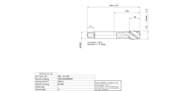 Machine taps for UNC-threads 7/8 – 9 / 2B / 3xD / ~DIN 376 / DIN 2184-1 / HSS-E / bright / Type: N R40 / Form: C / blind hole / Cutting direction: right-hand /