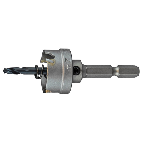 Tungsten Carbide Tipped Holesaws suitable for drilling steel, stainless steel, aluminium, FRP, PVC, plastics & fibreglass. The tungsten carbide tip maintains excellent durability due to the ideal blade angles. The cutting angle design uses the latest metal cutting technology. The escape angle discharges shavings quickly for smooth snag free cutting. NON-UNIFORM DISTANCES BETWEEN TEETH. Vibration is reduced by the non-uniform and varied distances between the teeth. ONE PIECE BODY STRUCTURE. With a one piece structure, there is no play or flexing between the shank and cutting edge, resulting in sharp, crisp, smooth cutting. SAFE STOPPER COLLAR. Getting the holesaw stuck in the back of the cut material is prevented for safer, faster drilling. CORDLESS TOOLS. The 3.2mm depth of cut Holemaker holesaws are specially designed for use with cordlesss tools. Ejector spring fitted as standard. Not for impact use. Diameter: 19mm