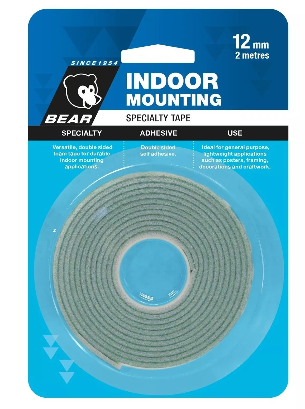 Home » Shop » CUTTING TOOLS (HSS & Carbide) » ABRASIVES » BEAR DOUBLE SIDED INDOOR MOUNTING TAPE » INDOOR MOUNTING TAPE 24mm x 2M BEAR DOUBLE SIDED