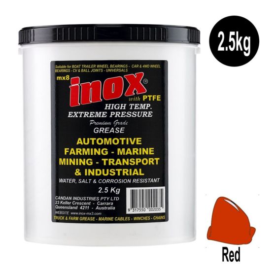 The extreme pressure and anti-wear properties of INOX MX8 grease gives long service life under high loading and shock loading conditions from very low to very high temperature environments. These special characters of shear stability, combined with the inclusion of effective rust, oxidation and corrosion inhibitors and tackiness adhesives, ensures this grease to perform in almost any application. INOX MX8 is a lithium complexgrease, which means that it will hold together extremely well under high pressure and variable temperatures.