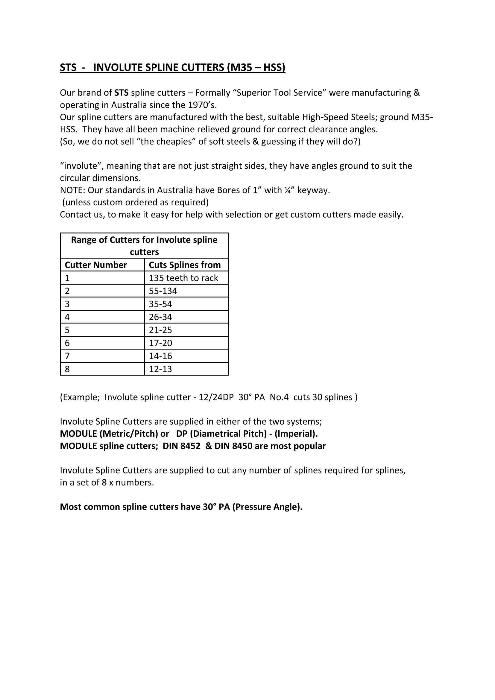 Our brand of STS spline cutters – Formally “Superior Tool Service” were manufacturing & operating in Australia since the 1970’s.