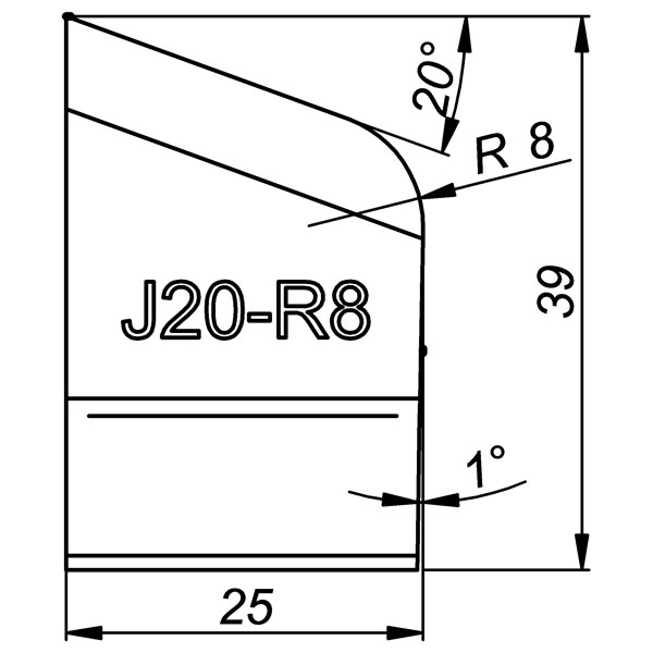 ITM J-BEVELLING TOOL BIT, J20/R8, 20 DEG X 39MM HIGH, 8MM RADIUS TO SUIT PRO5PB BEVELLER