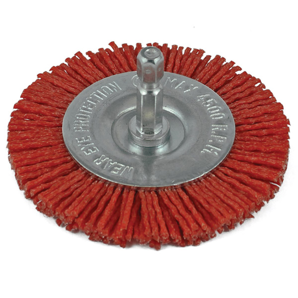 Material: Nylon Diameter: 100mm Shank: 1/4″ Hex Width: 12mm Wire: 80 Grit Max RPM: 4,500