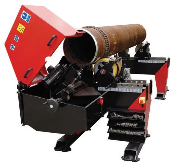 High-speed rotary milling head with replaceable inserts. Heavy duty milling head offers accurate bevels in a fraction of the time compared to traditional single point machining. Bevel widths up to 45mm and angles between 0° and 60°. Internal bevelling and J-groove end preparation is an available option. An optional Oval Pipe attachment is available for bevelling of pipe which is not truly round.