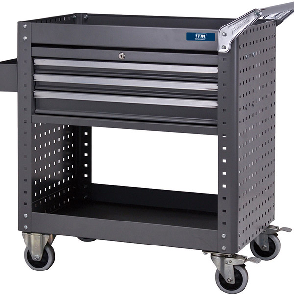 1.2mm metal frame construction. 200kg total load capacity. Adjustable height of each layer. Each shelf & drawer includes a 3mm anti-slide EVA cushion. PB-CTCH5086 drawer dimensions:. 2 Drawers 40 x 270 x 570mm. 1 Drawer 65 x 270 x 570mm. Curved edge design. Peg boards allowing quick access to frequently used tools. Lockable drawer provides extra security (PB-CTCH5086). 100mm heavy duty castors – 2x swivel lockable, 2x fixed