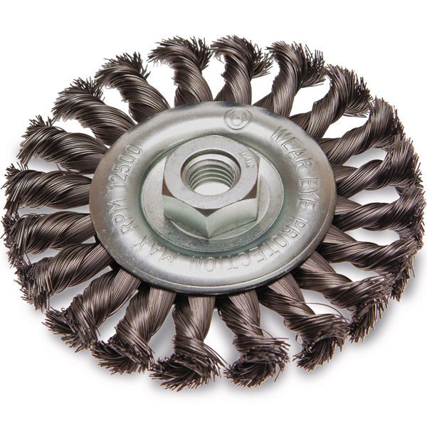 ITM TWIST KNOT WHEEL BRUSH STEEL 150MM, 22.2MM THREAD WITH 5/8″ & 1/2″ ADAPTORS