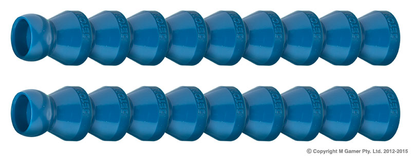 • Made from petroleum resistant POM plastic which is ideal for use with: • alcohols, ethyl, acetone, commercial detergents, gasoline, greases, lacquer solvents, oils, sodium hydroxide, insecticides & brake fluids. • Is not electricity conductive and is suitable for use on electrical discharge (EDM) machines. • Maximum operating temperature: 65° C • • NOT SUITABLE for use with strong acids or bases, ammonium hydroxide(strong), Hypochlorite lon solutions, Sodium hypochlorite. 1/4″ Segment Pack 15 CM – 2 sets Min. Corner Radius: 69mm Flow Rate: 900 Ltr/Hr Max. Pressure: 100 PSI