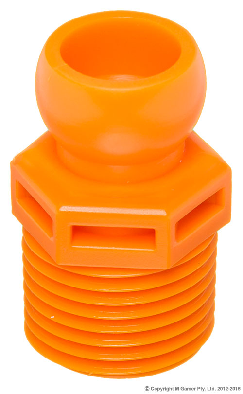 • Made from petroleum resistant POM plastic which is ideal for use with: • alcohols, ethyl, acetone, commercial detergents, gasoline, greases, lacquer solvents, oils, sodium hydroxide, insecticides & brake fluids. • Is not electricity conductive and is suitable for use on electrical discharge (EDM) machines. • Maximum operating temperature: 65° C • • NOT SUITABLE for use with strong acids or bases, ammonium hydroxide(strong), Hypochlorite lon solutions, Sodium hypochlorite. Connector Socket: 3/8″ Inlet: 3/8″ Male PT thread Flow Rate: 1500 Ltr/Hr Max. Pressure: 100 PSI Pack of 4
