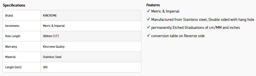 KINCROME 64003 STAINLESS STEEL RULE 12