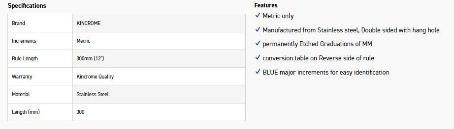 KINCROME 64007 STAINLESS STEEL RULE 300MM