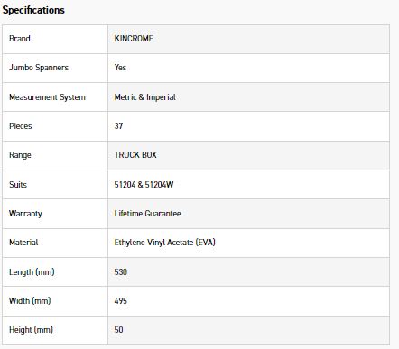 Kincrome EVA Trays have been specifically designed to protect and maintain your Kincrome Professional Quality Tools®. These tool trays are custom made to suit Kincrome Tool Chests and Boxes. Kincrome EVA Trays make selection of your tools easier and quicker – saving you valuable time
