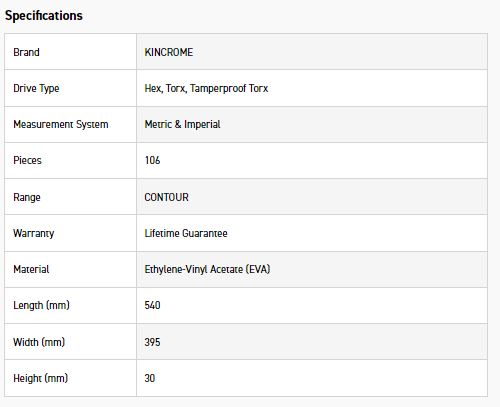 o 1/16” x 14 x 90mm, 5/64” x 16 x 100mm, 3/32” x 18 x 112mm, 1/8” x 20 x 126mm, 5/32” x 25 x 140mm, 3/16” x 28 x 160mm, 1/4” x 32 x 180mm,