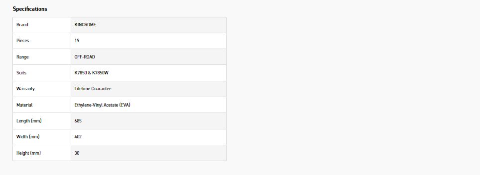Kincrome EVA Trays have been specifically designed to protect and maintain your Kincrome Professional Quality Tools®. These tool trays are custom made to suit Kincrome Tool Chests and Boxes. Kincrome EVA Trays make selection of your tools easier and quicker – saving you valuable time.