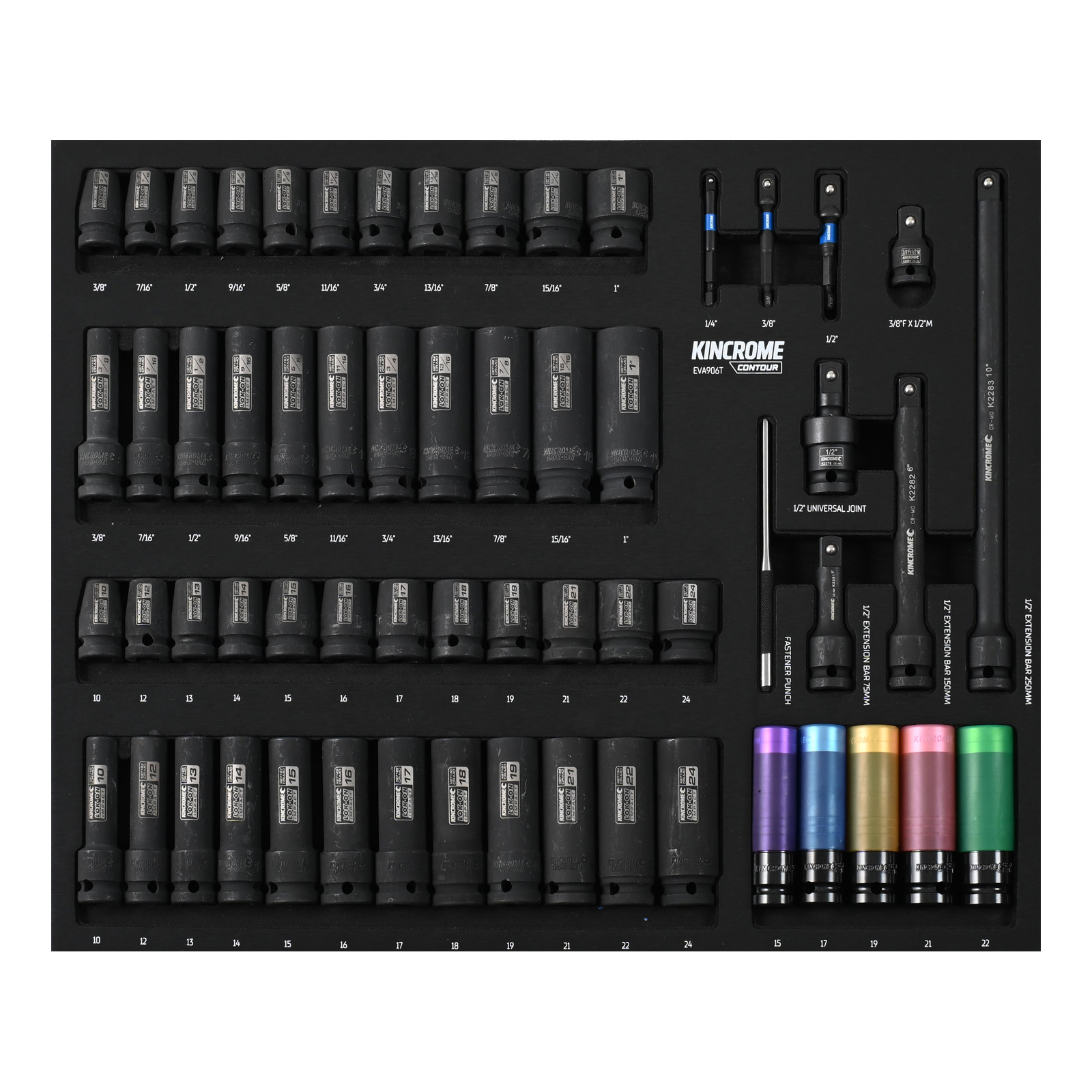 • 11 LOK-ON™ Impact Sockets 1/2" Square Drive: 3/8, 7/16, 1/2, 9/16, 5/8, 11/16, 3/4, 13/16, 7/8, 15/16, 1"