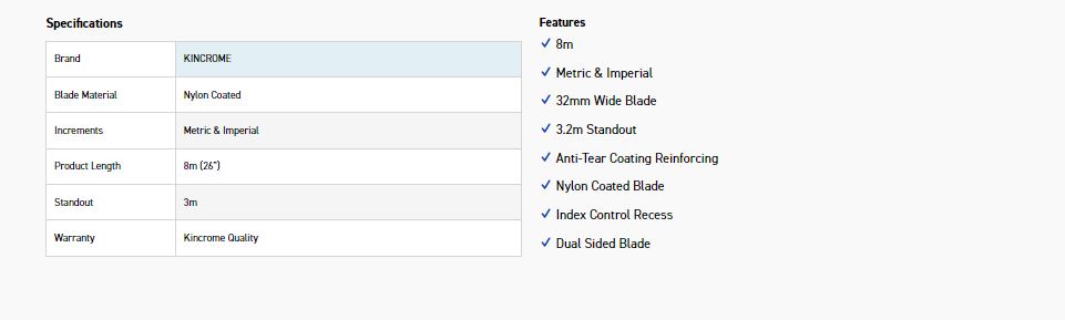 KINCROME K11001 XTENDA TAPE MEASURE 8M/26