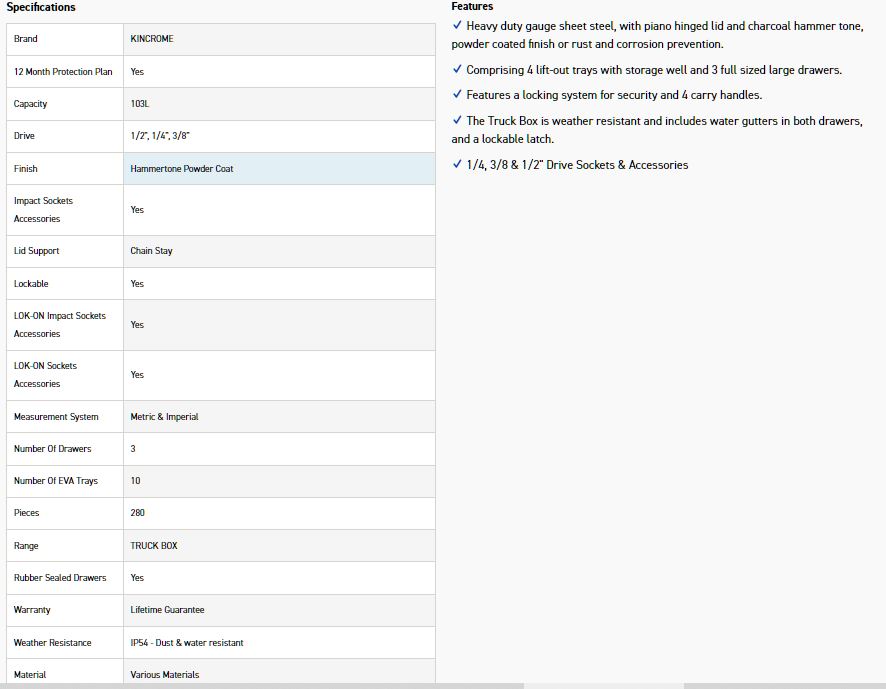 The Truck Box is weather resistant and includes water gutters in both drawers, and a lockable latch.