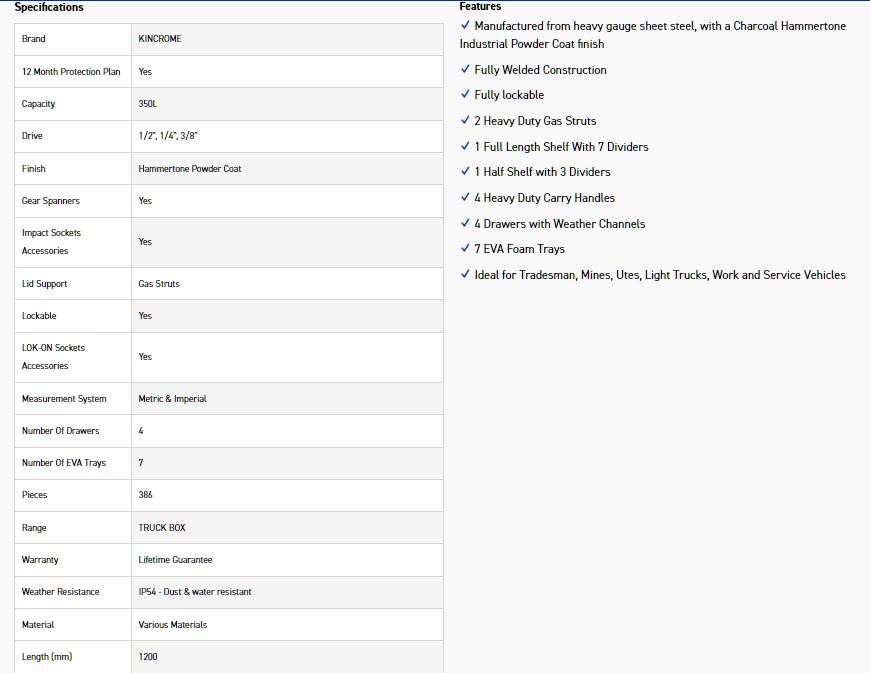 Ideal for Tradesman, Mines, Utes, Light Trucks, Work and Service Vehicles