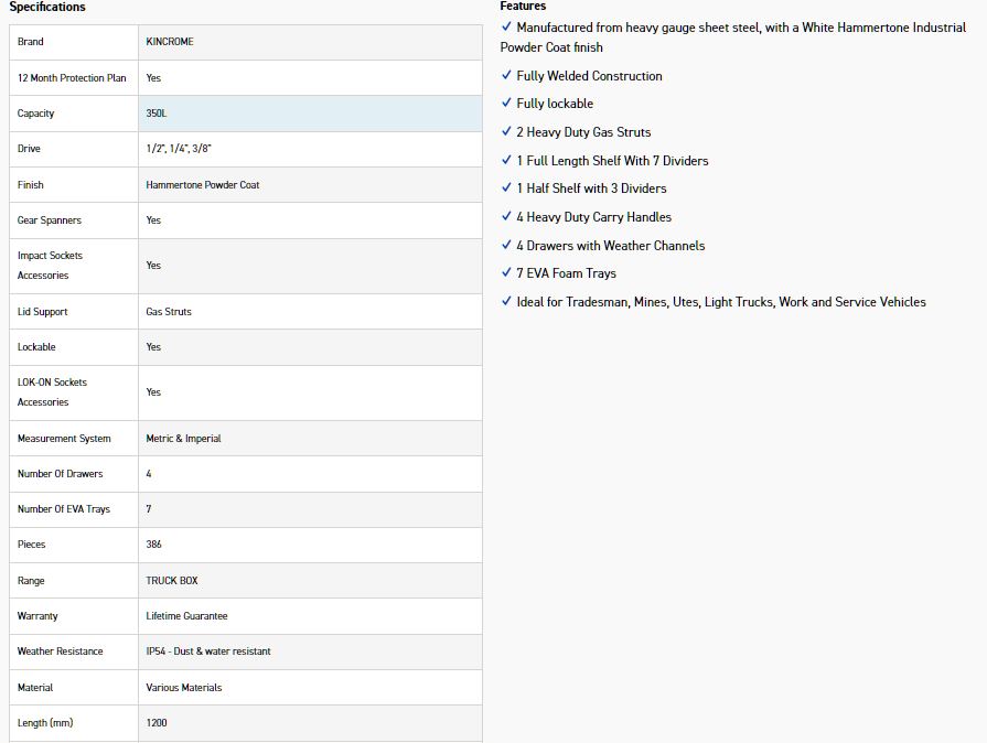 Ideal for Tradesman, Mines, Utes, Light Trucks, Work and Service Vehicles