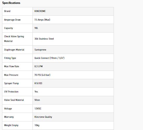 The Kincrome range of 12V Sprayers offers agriculture users a high-quality sprayer for professional use, with innovative components and engineering for spot or broadcast spraying performance. The premium components used throughout the pump allow for a 100% continuous duty rating with no cool down period required, allowing for continuous spraying over large areas. With patent-pending DXS-3™ valves featuring chemical-resistant Viton, Kincrome 12V Sprayers provide faster priming, better performance and best of all, last up to 5 times longer than other brands. Kincrome Sprayers are packed with components that are designed to reduce wear and keep working, like a Honeywell MICRO SWITCH™, a Santoprene™ diaphragm and a chemical-resistant fiberglass-reinforced polypropylene pump manifold. The innovative smooth valve design provides faster primes. It also has our unique pressure switch, designed to slowly cycle the pump to reduce switch and motor wear. To conserve battery power, we gave it an automatic power switch that turns off when no flow is needed. When other pumps are in for repairs, Kincrome pumps are still on the job! The Sprayer tank is made from durable Polyethylene and has been designed to feature extra thick walls that are UV-resistant and compatible with virtually all pesticides. Kincrome Sprayers are all compatible with Roundup® agricultural herbicide