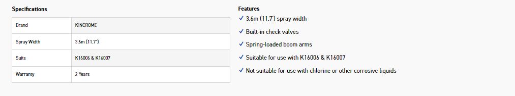 KINCROME K16127 7-NOZZLE BOOM SPRAYER KIT
