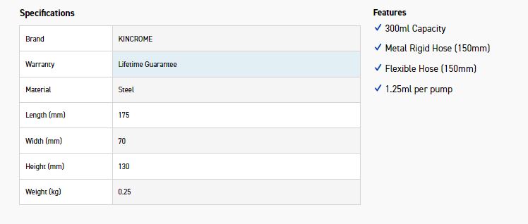 KINCROME K1700 OIL CAN 300ML RIGID/FLEX SPOUT