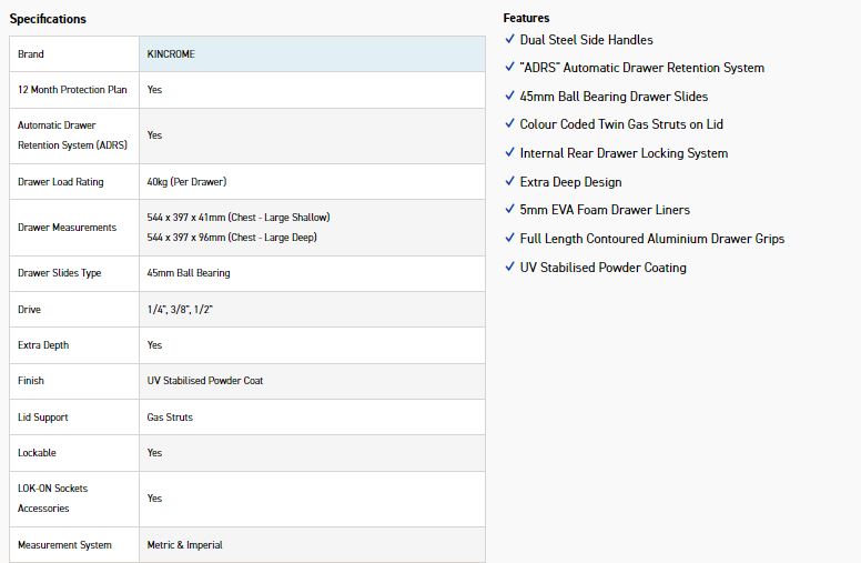 ⢠13 Combination Spanners: 1/4, 5/16, 3/8, 7/16, 1/2, 9/16, 5/8, 11/16, 3/4, 13/16, 7/8, 15/16, 1"