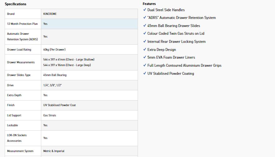 ⢠13 Combination Spanners: 1/4, 5/16, 3/8, 7/16, 1/2, 9/16, 5/8, 11/16, 3/4, 13/16, 7/8, 15/16, 1"