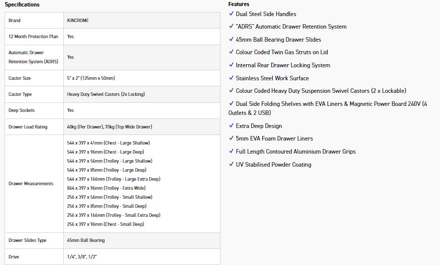 Dual Side Folding Shelves with EVA Liners & Magnetic Power Board 240V (4 Outlets & 2 USB)
