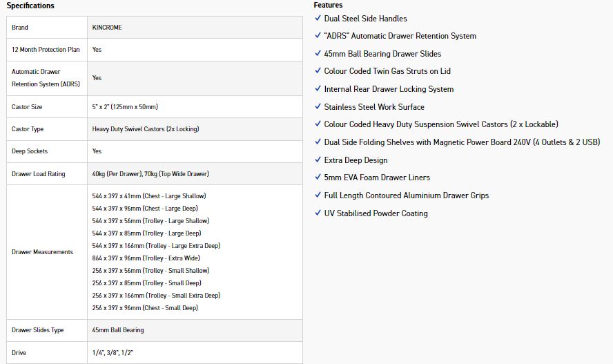 ⢠CONTOURĀ® Tool Trolley 9 Drawer 42" – K74229