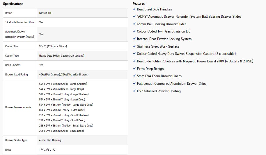 ⢠13 Combination Spanners: 1/4, 5/16, 3/8, 7/16, 1/2, 9/16, 5/8, 11/16, 3/4, 13/16, 7/8, 15/16, 1"