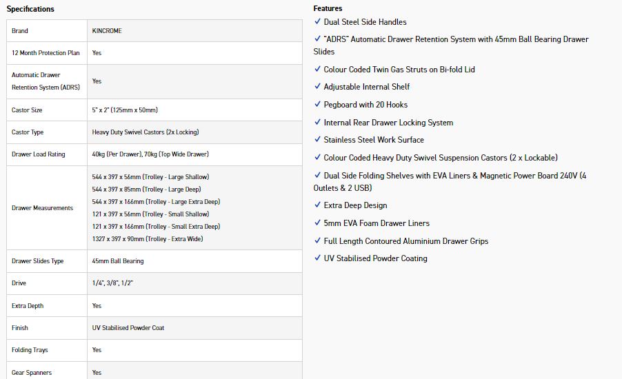Dual Side Folding Shelves with EVA Liners & Magnetic Power Board 240V (4 Outlets & 2 USB)