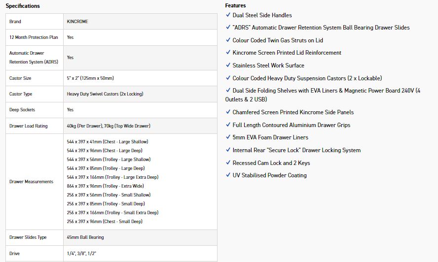 ⢠CONTOURĀ® Tool Trolley 9 Drawer 42" – K74229