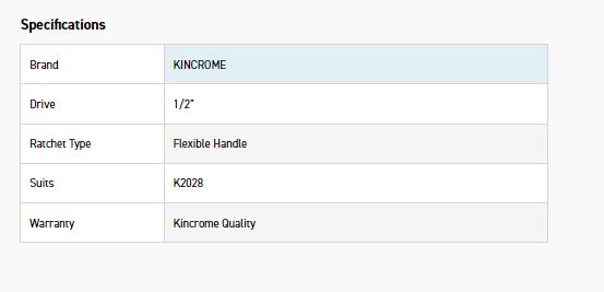 Repair Kit to suit Ratchet Flex Handle 450mm (18″) – 1/2″ Square Drive (Part No. K2028)