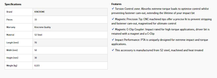 KINCROME K21019 33PCE IMPACT GENERAL PURPOSE