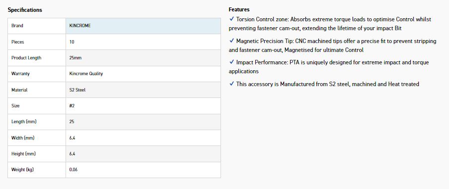 Magnetic Precision Tip: CNC machined tips offer a precise fit to prevent stripping and fastener cam-out, Magnetised for ultimate Control