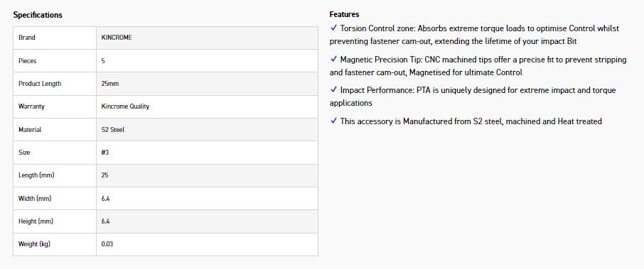 Magnetic Precision Tip: CNC machined tips offer a precise fit to prevent stripping and fastener cam-out, Magnetised for ultimate Control