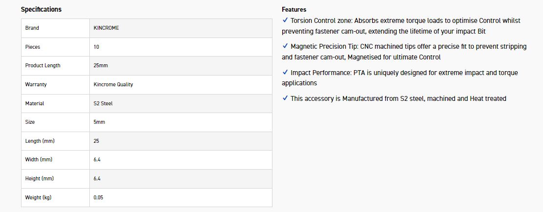Magnetic Precision Tip: CNC machined tips offer a precise fit to prevent stripping and fastener cam-out, Magnetised for ultimate Control