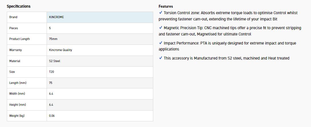Magnetic Precision Tip: CNC machined tips offer a precise fit to prevent stripping and fastener cam-out, Magnetised for ultimate Control