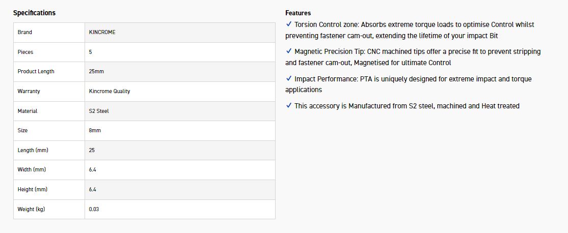 Magnetic Precision Tip: CNC machined tips offer a precise fit to prevent stripping and fastener cam-out, Magnetised for ultimate Control