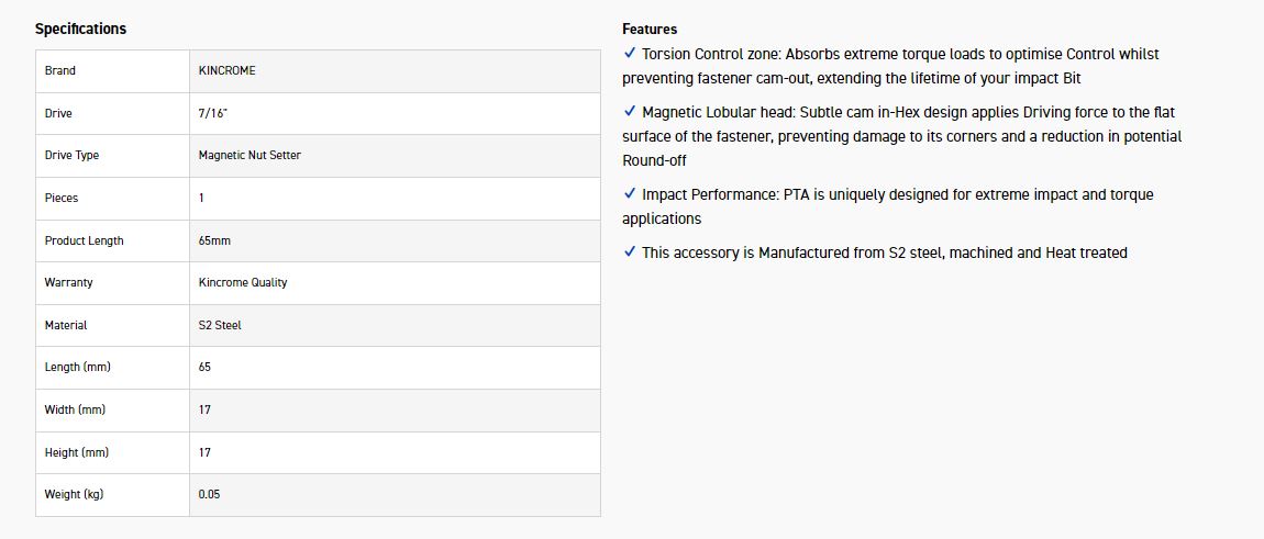 KINCROME K21475 IMPACT NUTSET-MAG 7/16 65MM 1P