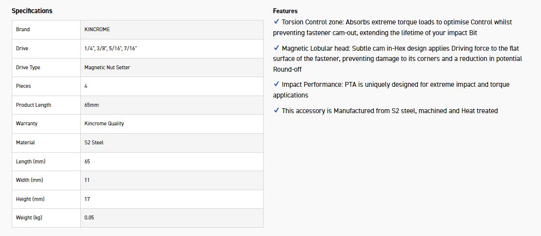 Torsion Control zone: Absorbs extreme torque loads to optimise Control whilst preventing fastener cam-out, extending the lifetime of your impact Bit