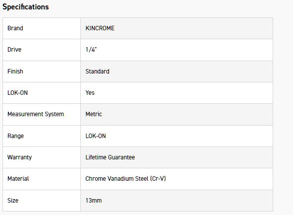 Kincrome LOK-ON™ Sockets, Sets and Accessories have been engineered beyond world-class benchmarks, exceeding all international torque and lifetime standards. Offering unique patented features such as the LOK-ON™ Socket’s ability to loosen up to 85% rounded/damaged fasteners, the LOK-ON™ range has been developed with both function and style in mind. Each component within the LOK-ON™ range includes features above and beyond the market’s expectation, setting a new benchmark for the professional quality tool industry.